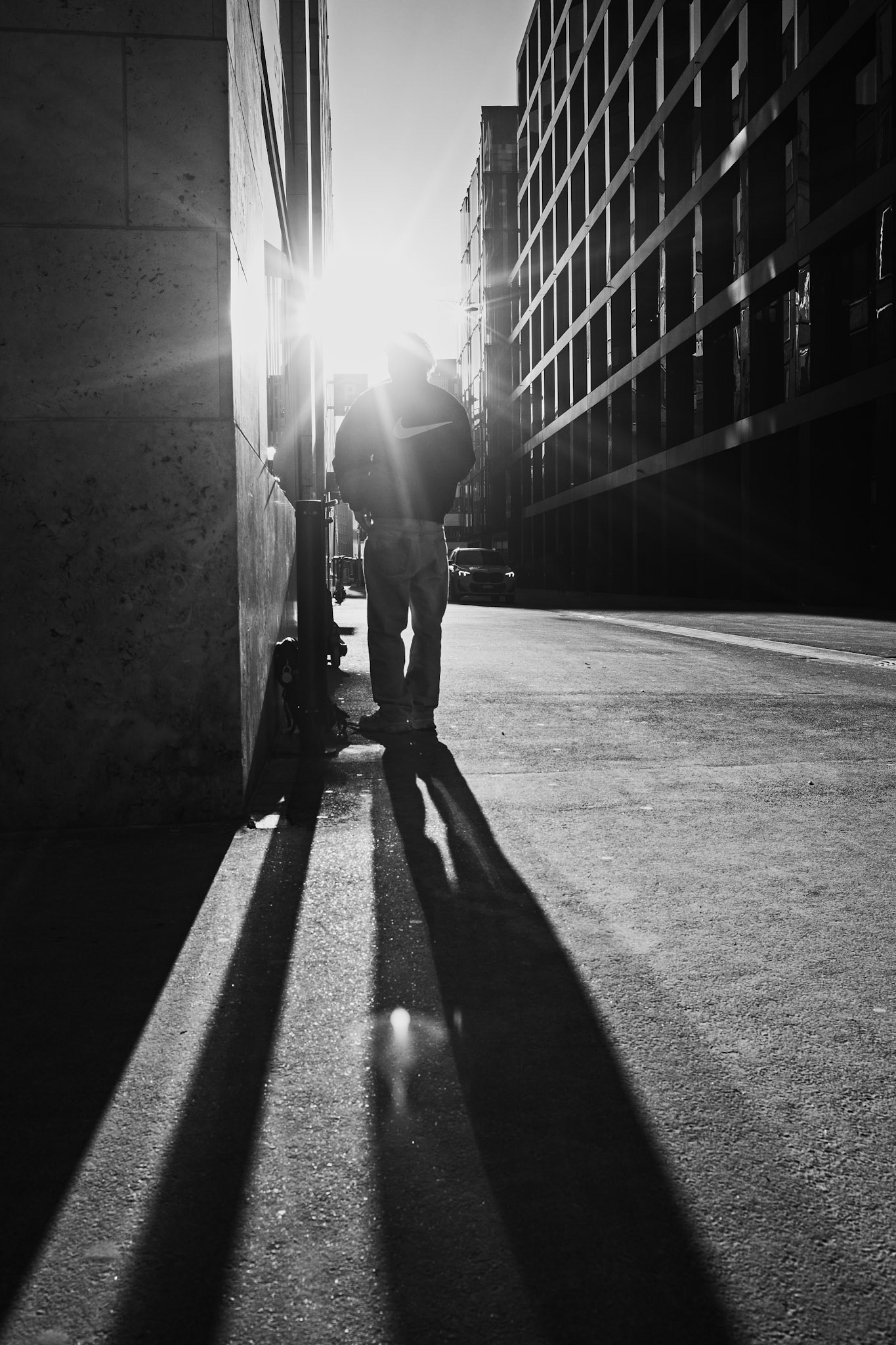 Cities are often described as loud, crowded and restless. This work is a study of intervals — where light isolates, where shadows divide space, and where citizens move quietly through vast structures. The photographs are not about a specific city, but about contrast, geometry and presence within the urban scenery. What remains are echoes of light.